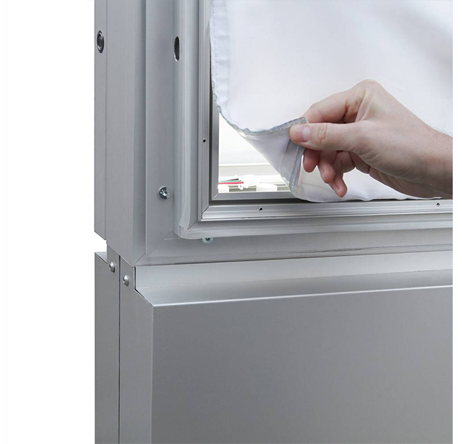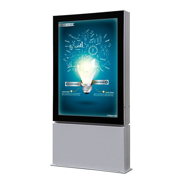 Cuenta con un diseño elegante, moderno y dinámico de alta calidad y ultima generación. Se trata de un Tótem publicitario de doble cara con panel frontal de seguridad resistente a los impactos y en el que se pueden visualizar los mensajes de manera excelente. Tiene un sistema de cierre con cerradura triangular para su máxima seguridad. Es muy apto para usar en exteriores ya que cuenta con protección anti-humedad y contra la entrada de agua. Tiene un gran ventaja que es poder sustituir fácilmente los mensajes publicitarios.